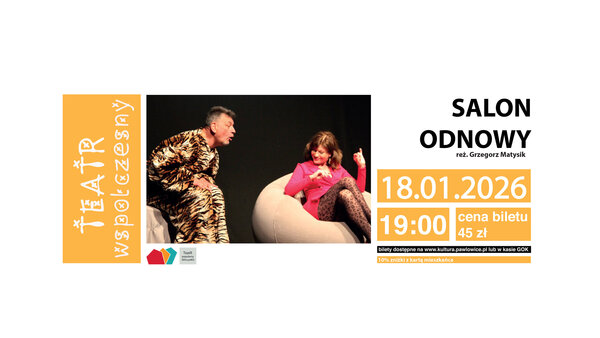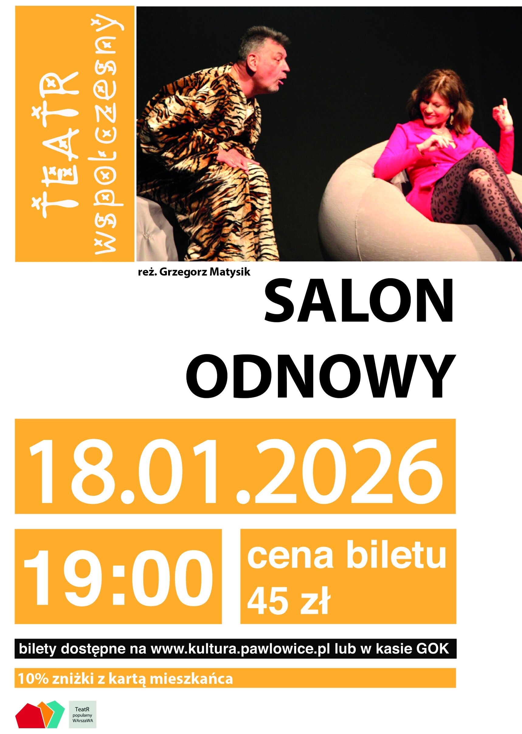 Dwóch niezadowolonych z życia mężczyzn trafia do SALONU ODNOWY, prowadzonego przez tajemniczą kobietę, której życie nie rozpieszczało. Za pomocą różnych zabiegów próbuje ona przywrócić obu panom wiarę w sens życia. Odnowa duchowa, której są poddawani, odkrywa przed nimi nieznane światy i prowadzi do zaskakującego finału. Historia przepełniona jest humorem oraz zabawnymi zwrotami akcji, występują w niej również elementy interakcji z publicznością. Aktorzy wcielając się w swoje role, bawią się z widzami. Atmosferę spektaklu podkreślają przebojowe i żartobliwe piosenki.