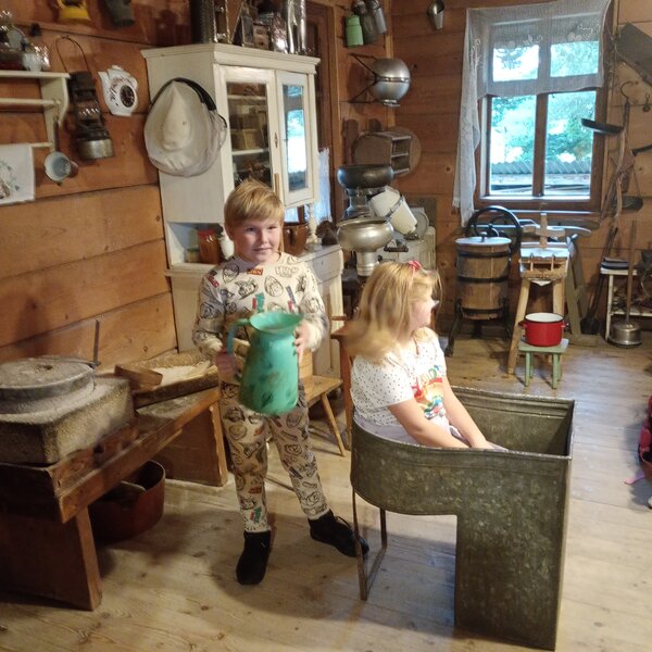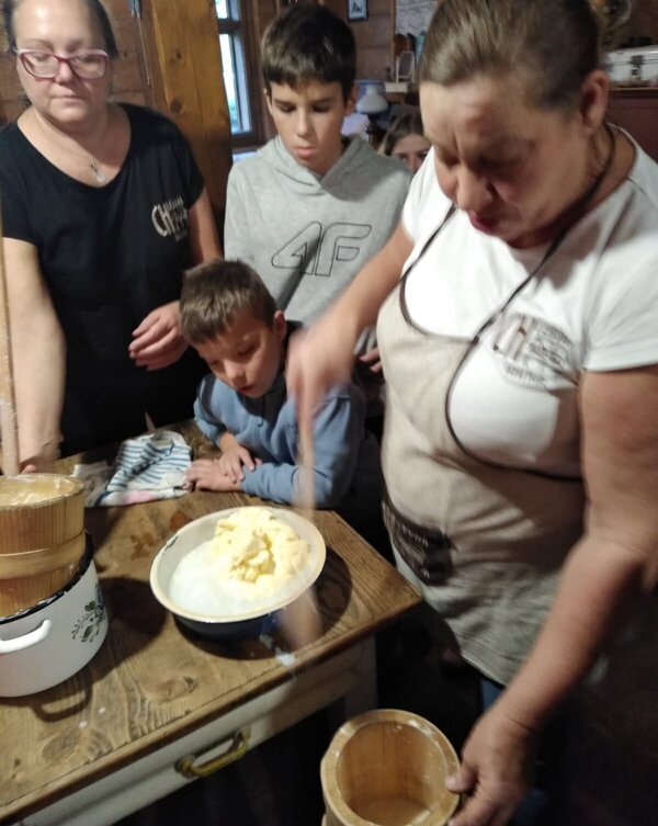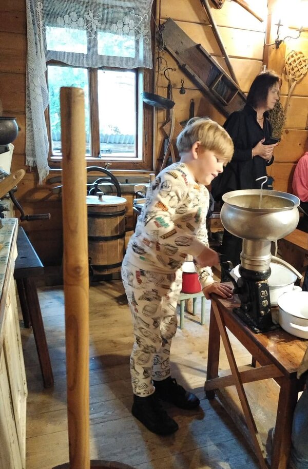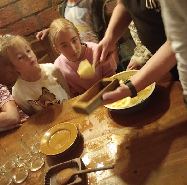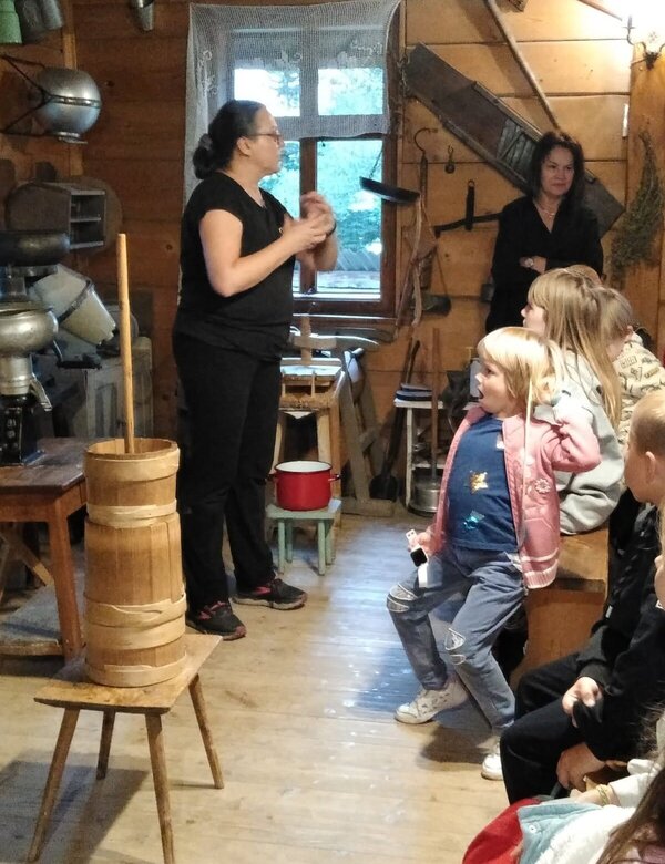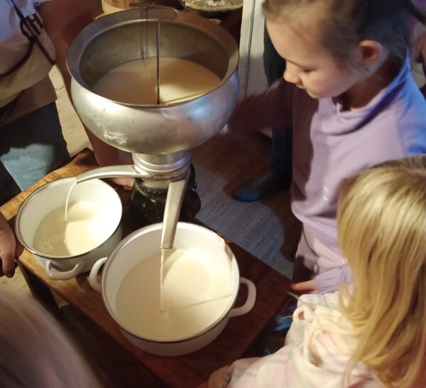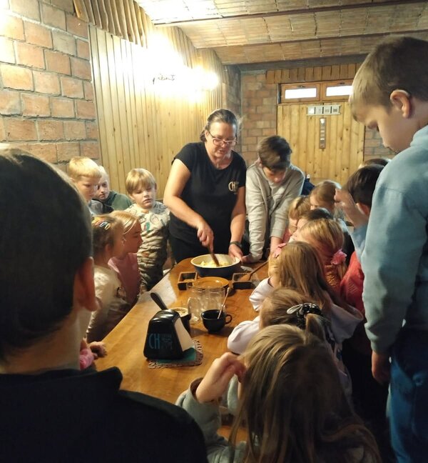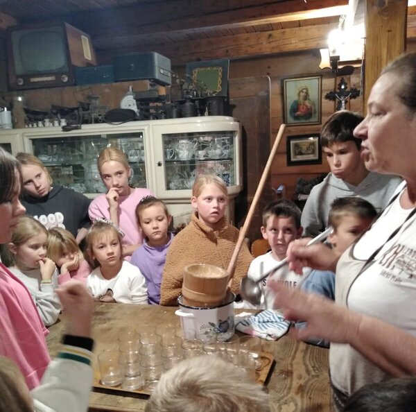 Dzieci miały okazję poznać życie na wsi naszych przodków. Zapoznały się z podstawowymi rodzajami zbóż i i ich zastosowaniem. Zobaczyły maszyny, które dawniej były wykorzystywane przy uprawie i obróbce ziarna. Największą atrakcją dla dzieci okazało się wyrabianie masła, sera i śmietany oraz proces wypiekania podpłomyków. Całe popołudnie dzieci spędziły w bardzo fajnej atmosferze, bawiąc się i ucząc jednocześnie.