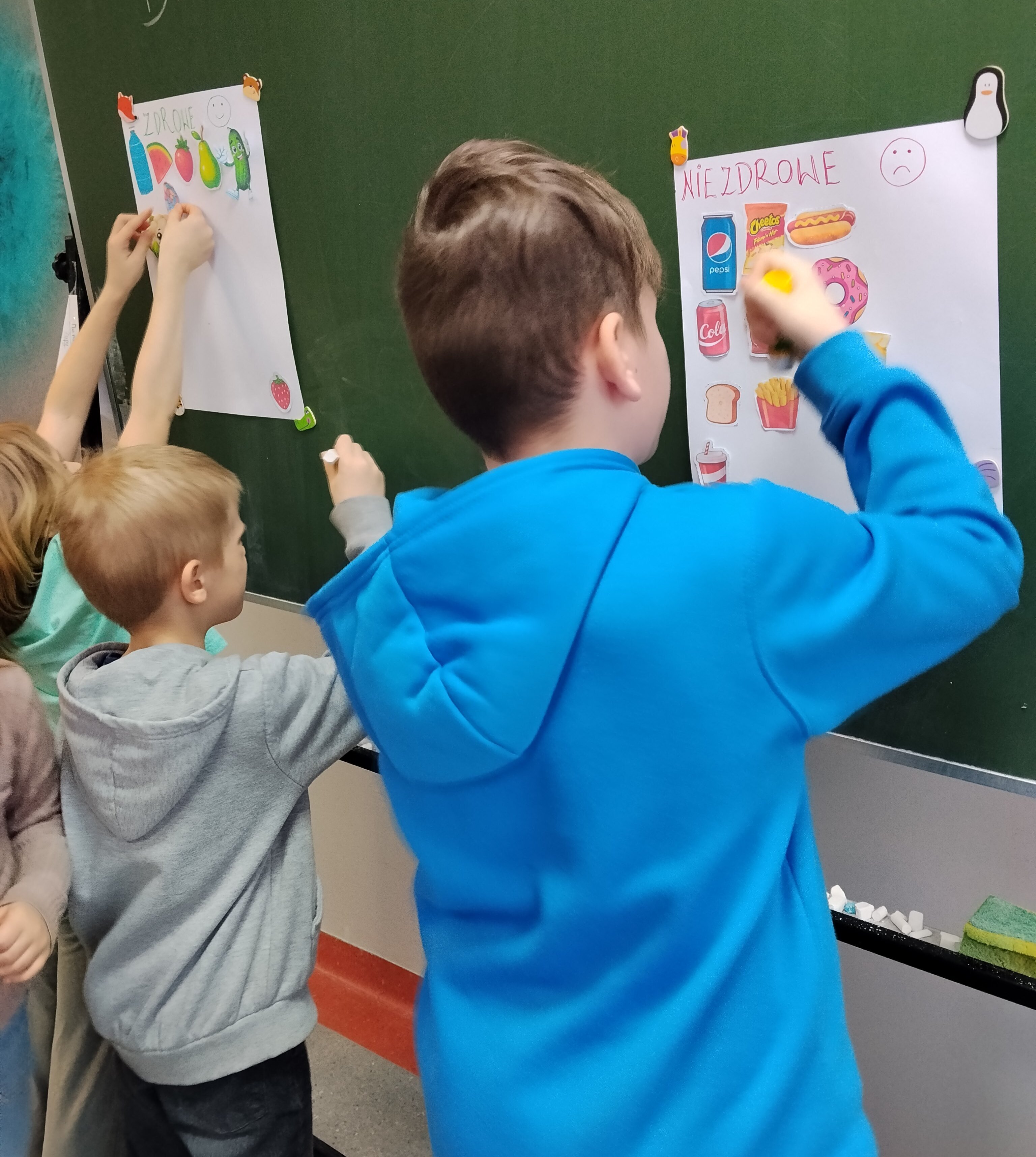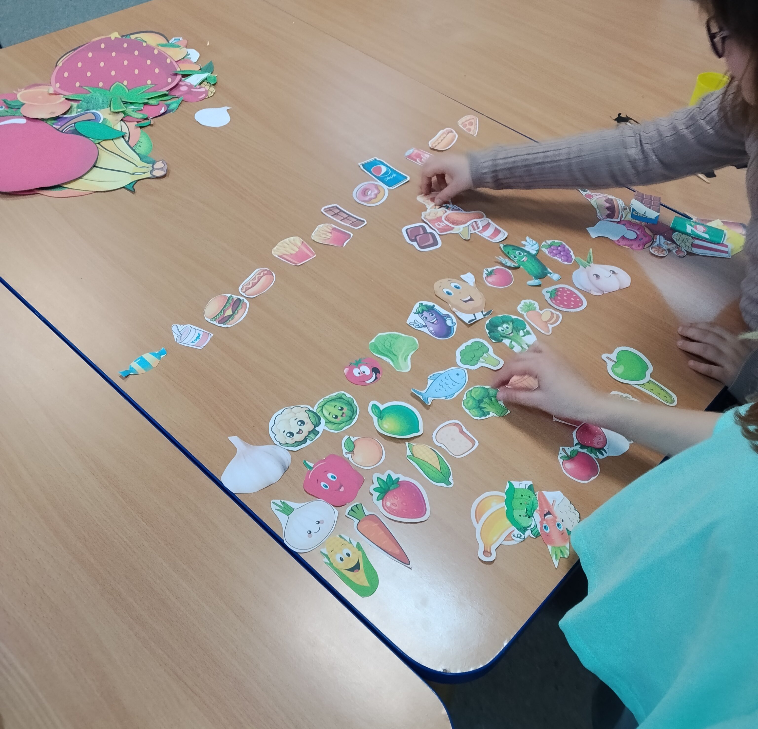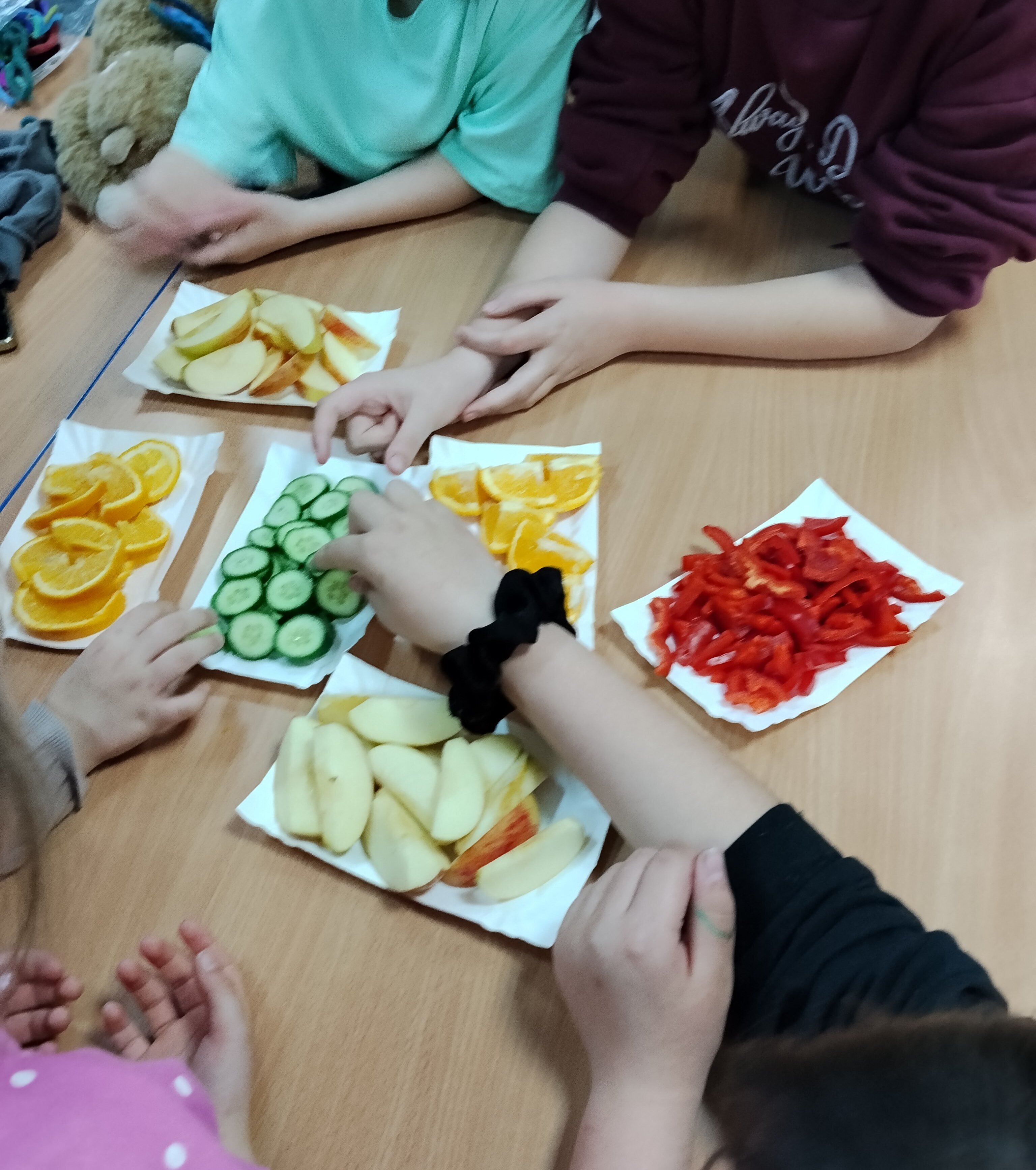 8 kwietnia obchodziliśmy na świetlicy dzień zdrowia. Na początku zajęć dzieci posegregowały produkty na te dobre i te, które dobrze nie wpływają na nasze zdrowie. Następnie, dzieci powycinały i poprzyklejały owoce i warzywa tworząc kolorową tęcze. Zajęcia zakończyły się owocowo-warzywną ucztą.