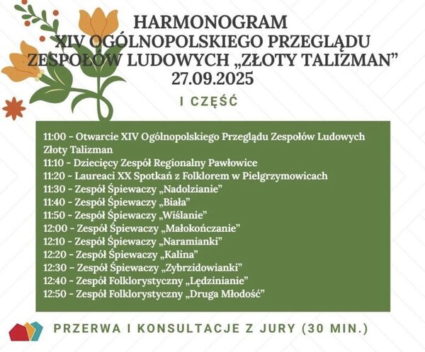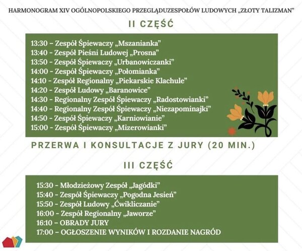 HARMONOGRAM XIV OGÓLNOPOLSKIEGO PRZEGLĄDU ZESPOŁÓW LUDOWYCH „ZŁOTY TALIZMAN”