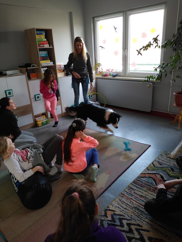 Na zajęciach z dogoterapii piesek Kadi pokazywał dzieciom sztuczki. Następnie dzieci rozwiązywały quiz na tematy dotyczące piesków.